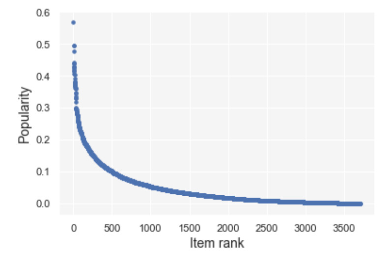 但是推荐算法会受到流行性偏见(popularity bias)的影响。流行性偏见是指,一些流行的项目会被经常推荐,而其他项目会被忽略。在上面的例子中,一些电影被更多的人喜爱,获得了更高的评分,就属于流行的项目,或者可以叫做热门项目,这些项目会被更多推荐给用户,这就是流行性偏见。